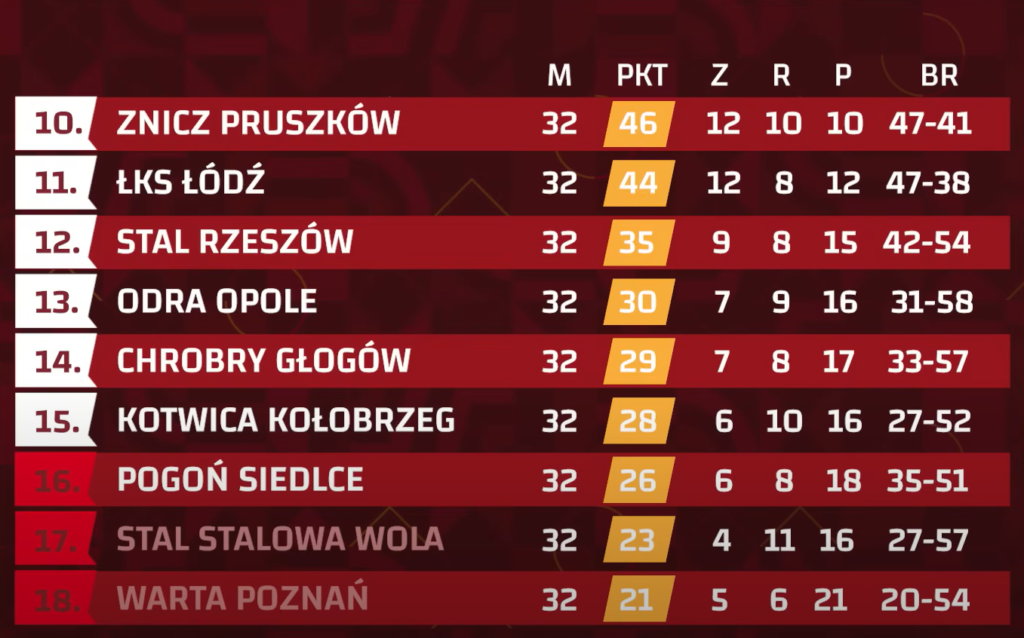 Za nami kolejne ważne rozstrzygnięcia w Betclic 1. lidze. Po 32. kolejce poznaliśmy dwie z trzech drużyn, które pożegnają się z drugim poziomem rozgrywkowym.