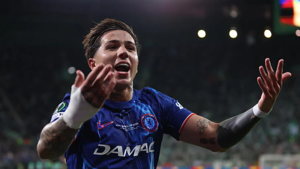 Foto: Enzo Fernández po strzeleniu wyrównującej bramki dla Chelsea we Wrocławiu / Chelsea FC za pośrednictwem Getty Images