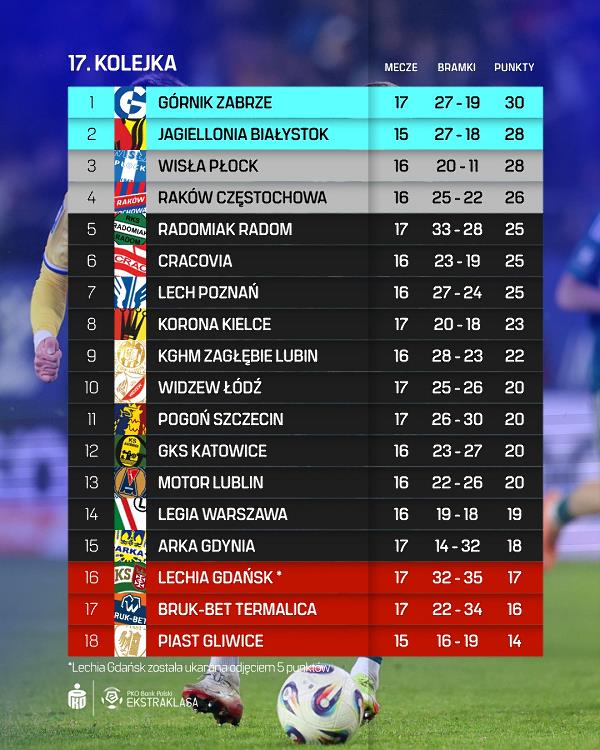 Nie udało się odnieść sukcesu między innymi żadnej z drużyn, tworzących TOP-4 przed startem rywalizacji, przy czym trzy z nich wyszły ze swoich starć z jednym punktem. Wyraźna zadyszka dotknęła Górnik Zabrze. Mimo, że utrzymał się na pozycji lidera, to ma on gorszą średnią punktów (1,76/mecz) od drugiej Jagiellonii Białystok (1,87/mecz), a nieznacznie lepszą od Wisły Płock (1,75/mecz). Nafciarze w czwartek zagrają zaległe starcie z Cracovią. Jeśli go wygrają, wskoczą na pozycję lidera.
