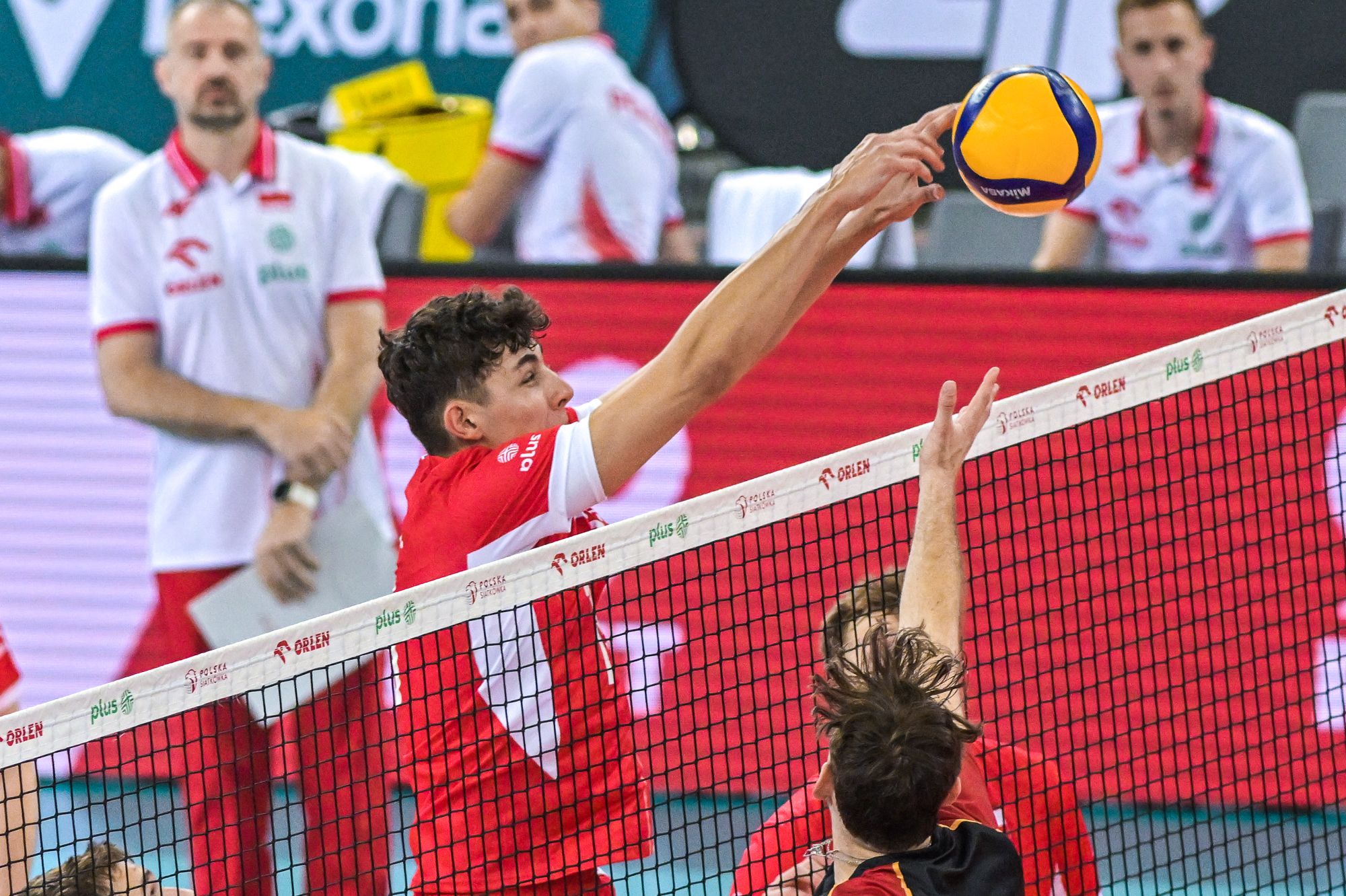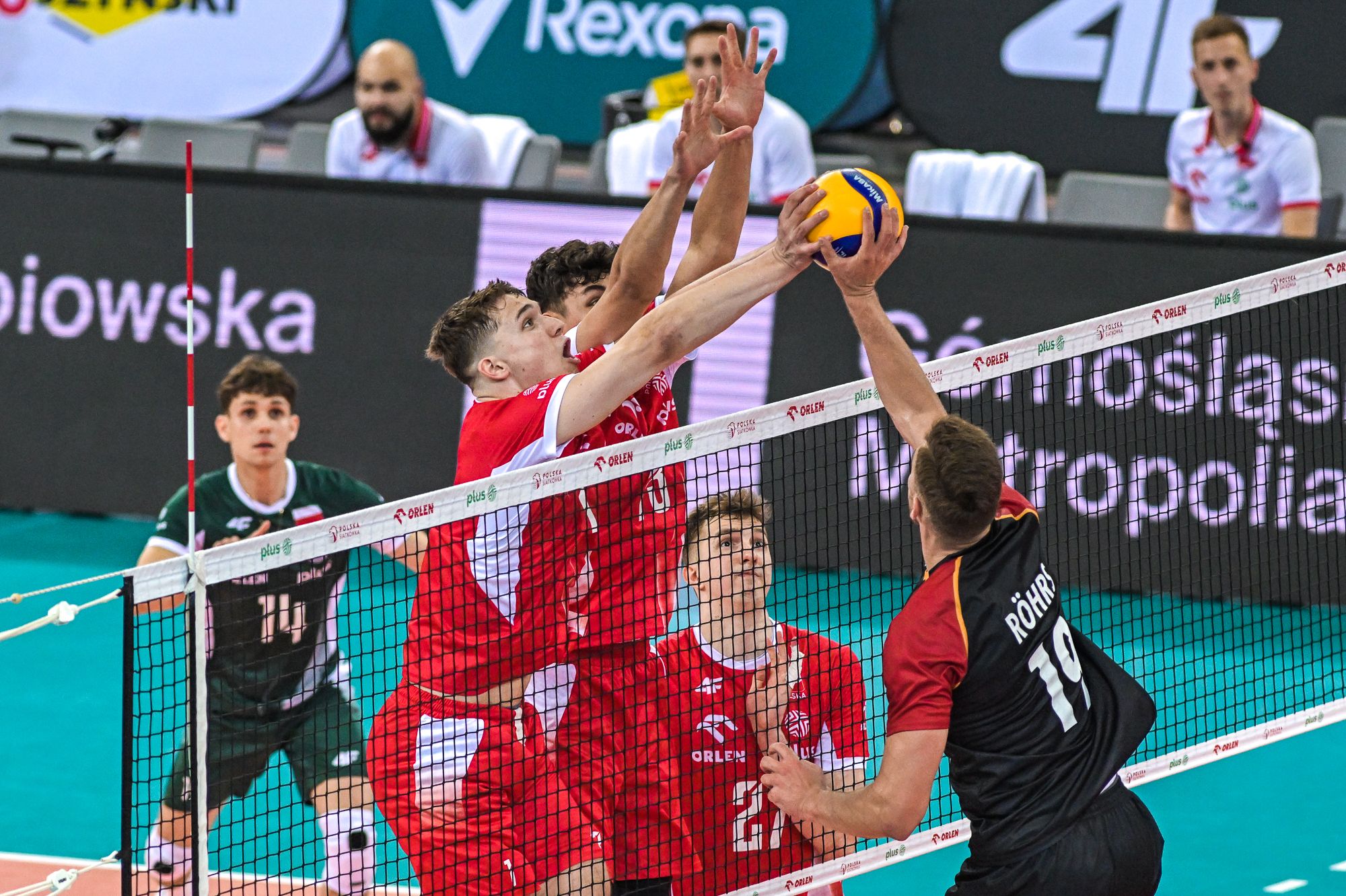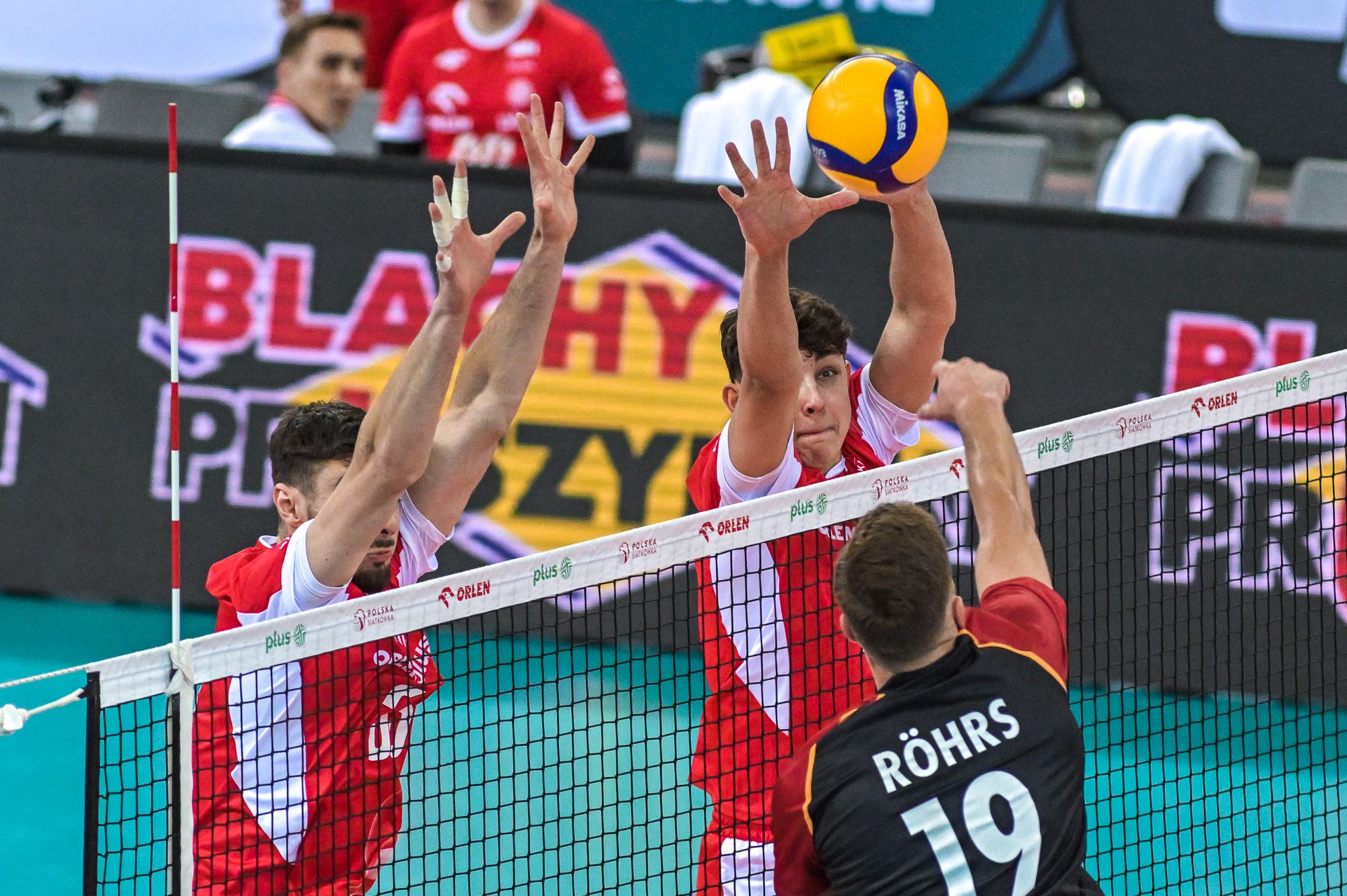 Biało-Czerwoni otworzyli mecz z Niemcami skutecznym blokiem (1:0), ale w początkowej fazie seta po obu stronach pojawiło się kilka błędów w polu serwisowym (4:4). Przy zagrywce Kajetana Kubickiego naszym siatkarzom udało się wypracować pierwsze trzypunktowe prowadzenie (8:5), lecz rywale bardzo szybko odrobili straty (9:9). Podopieczni Thomasa Rannera w dalszym ciągu nie potrafili wstrzelić się z zagrywką (12:10), natomiast po polskiej stronie w ataku ze środka siatki zameldował się Jordan Zaleszczyk (14:11). W szeregach rywali dobre zawody rozgrywał Filip John, a na tablicy wyników ponownie zagościł remis (17:17). W końcowych minutach seta serię świetnych zagrywek posłał Aliaksei Nasevich (22:19), lecz gdy Niemcy zaczęli odrabiać straty, trener Nikola Grbić zdecydował się wykorzystać przerwę na żądanie (24:24). Ostatecznie zwycięstwo padło łupem Niemców po skończonym ataku Jana Zimmermanna (26:24).