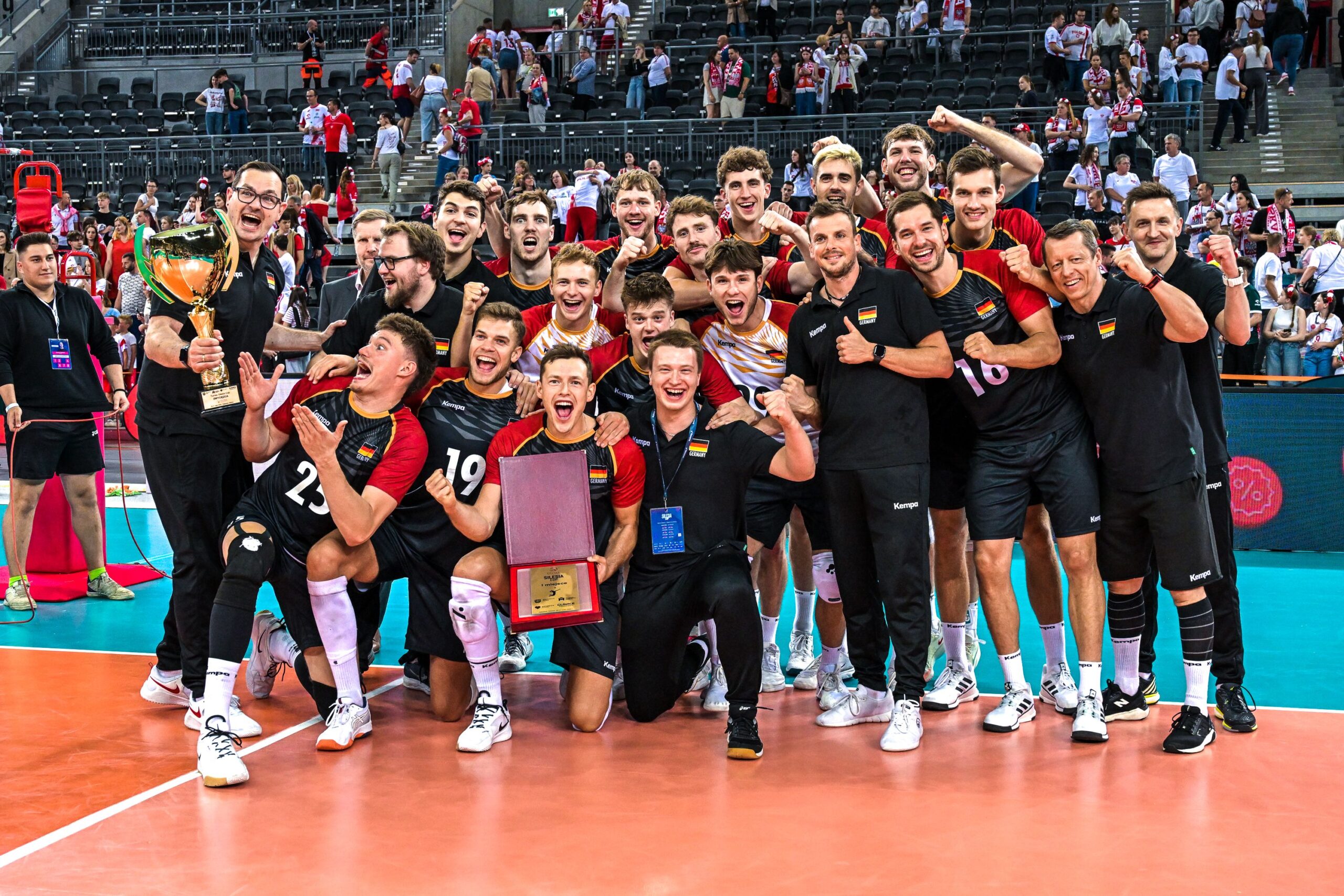 Polacy bezbłędnie rozpoczęli trzecią odsłonę, zdobywając trzy punkty z rzędu (3:0), bardzo czujnie na siatce grał młody środkowy, Jakub Nowak (5:1). Po przerwie na żądanie szkoleniowca reprezentacji Niemiec atak z lewego skrzydła zakończył Michał Gierżot (7:2), kolejne oczko do dorobku polskiego zespołu dorzucił również Nasevich (9:3). Eric Röhrs zapisał na swoim koncie asa serwisowego (10:8), zaś w naszej drużynie niestety ten element nieco szwankował (14:12). Po długiej przerwie w końcu zafunkcjonował polski blok, zatrzymując atakującego rywali (18:14), Niemcy natomiast przekroczyli przy zagrywce linię dziewiątego metra (21:15). W końcowym fragmencie inicjatywa leżała całkowicie po stronie naszej reprezentacji (23:16), która zakończyła ten set punktowym blokiem (25:17).