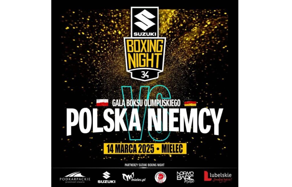 To będzie wielkie wydarzenie! 14 marca w Hali MOSiR Mielec odbędzie się gala boksu Suzuki Boxing Night 34, w ramach której Polscy bokserzy zmierzą się z bokserami z Niemiec. Zapewniamy silne ciosy, niesamowite emocje i walki na najwyższym poziomie!