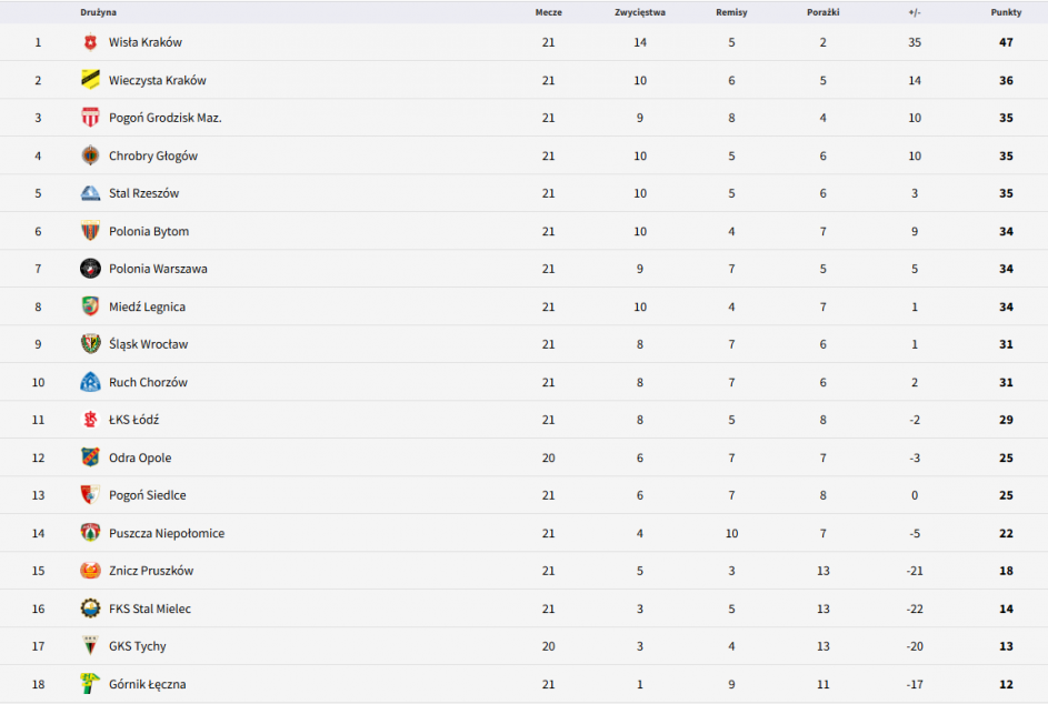 Wisła Kraków i Wieczysta Kraków na czele Betclic 1 Ligi. Wyniki niedzielnych meczów spowodowały zmiany w tabeli. Oznacza to, że zbliżające się derby Krakowa (20 lutego, transmisja w TVP) będą starciem dwóch najwyżej rozstawionych klubów.