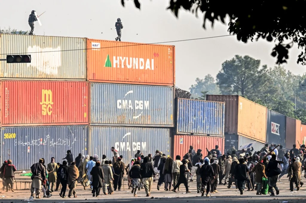 Niepokoje w Pakistanie wybuchają w pobliżu kontenerów towarowych w 2024 r. USA nałożyły na Pakistan 29% cła, które obecnie podlegają 90-dniowej przerwie. Aamir Qureshi / AFP / Źródło: kyivpost.com