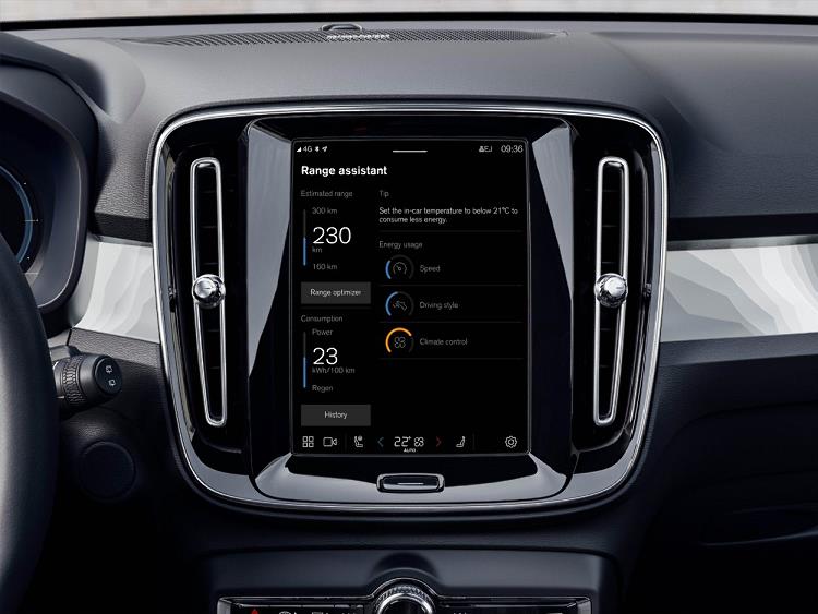 Aplikacja Range Assistant, stanowiąca idealny przykład strategii Volvo Cars polegającej na przenoszeniu rozwoju oprogramowania w coraz większym stopniu do firmy, pomaga kierowcom śledzić dostępny zasięg ich w pełni elektrycznego samochodu Volvo i optymalizować go poprzez inteligentne zarządzanie energią i porady dotyczące stylu jazdy z punktu widzenia wydajności.