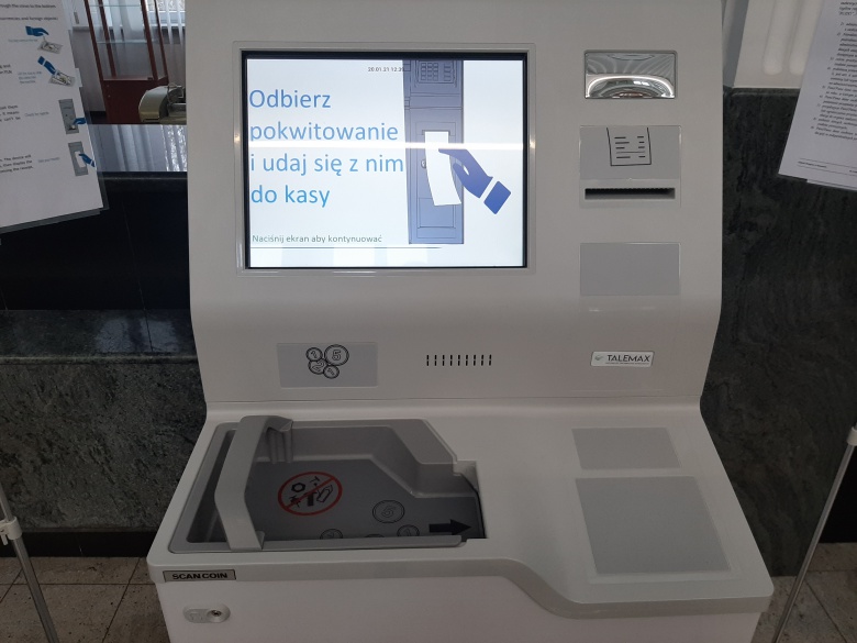 Do szuflady wrzucamy monety o nominałach od 1 gr do 5 zł, a następnie uzyskujemy potwierdzenie w postaci wydruku. Na jego podstawie w kasie NBP wypłacana jest równowartość przyjętych monet.