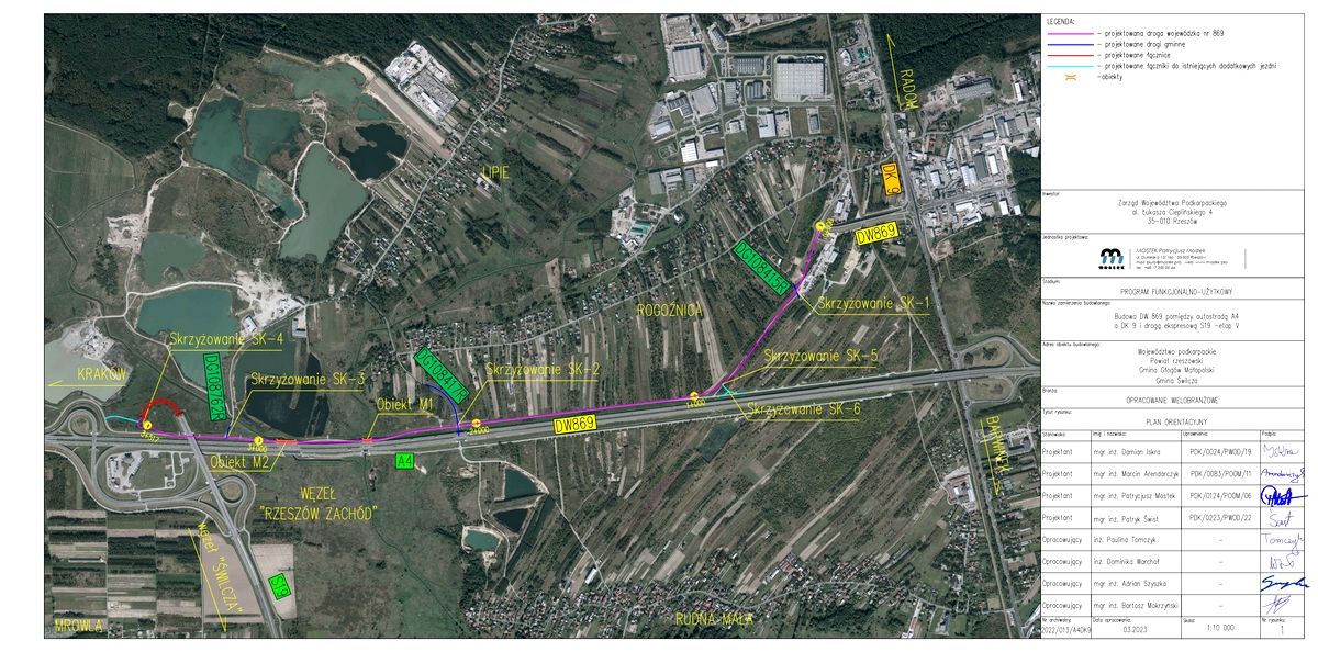 Zadanie, na które trwa obecnie przetarg, obejmuje projekt i budowę drogi. W koncepcji funkcjonalno-użytkowej nowy odcinek ma dwa warianty przebiegu. Oba wzdłuż autostrady A4, przez miejscowości Mrowla, Lipie i Rogoźnica, a więc w gminach Świlcza i Głogów Małopolski. W pierwszym wariancie droga jest wytyczona na terenach pół uprawnych i nieużytków rolnych, a w drugim biegnie głównie po śladzie jezdni dodatkowej A4. Zwycięzca przetargu opracuje projekt na jeden z nich. Termin składania ofert wyznaczono na 19 kwietnia.