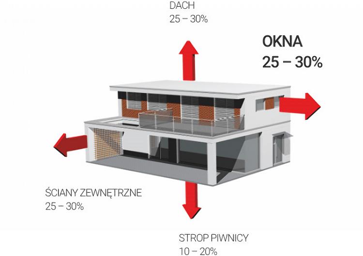 Przez okno może wydostać się bardzo dużo ciepła, nawet 25-30%. Żeby temu zapobiec, wybierajmy okna o odpowiednim poziomie izolacji cieplnej. Mądrze zaplanowane rozmieszczenie powierzchni okien ograniczą niepotrzebne straty energii. Są na to sprawdzone sposoby, jak montowanie dużych przeszkleń od strony południowej, które poprawiają bilans energetyczny budynku. Poziom izolacji zależy od szczelności okna, od zastosowania szkła izolacyjnego oraz materiału, z jakiego wykonano ramę.