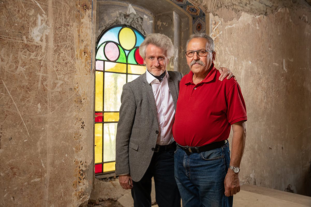 Jarosław Tomaszewski i Jan Herbetko, obecny prezes Stowarzyszenia Ratowania Cerkwi w Baligrodzie